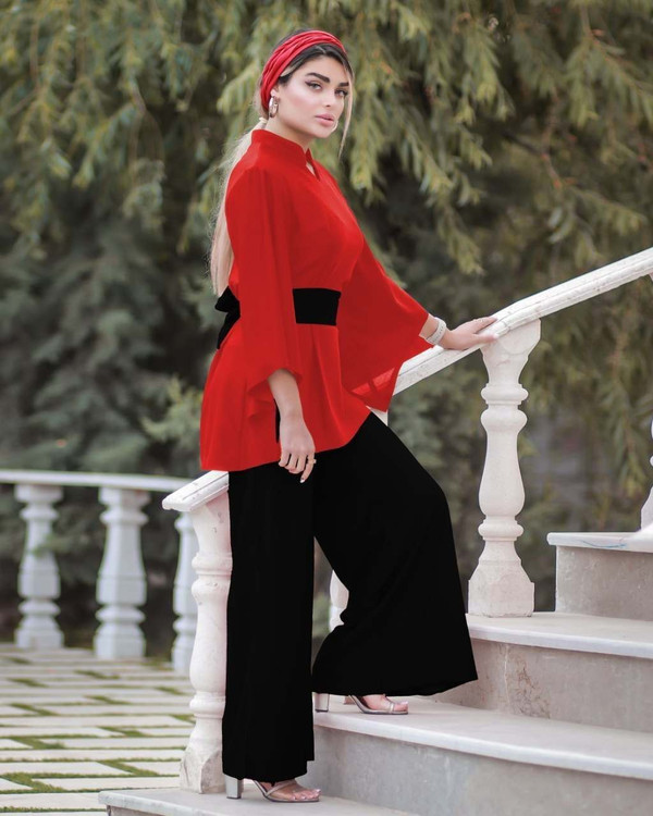 شومیز شلوار دو تیکه طرح بانو جنس دیور