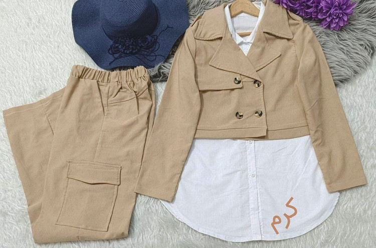 کت و شلوار شومیز سه تیکه طرح کتان بسیار شیک و جذاب
