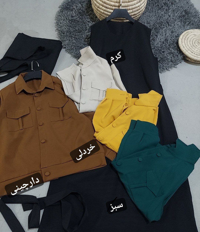رنگ بندی : خردلی/زیره مشکی, دارچینی/زیره مشکی, سبزکله غازی/زیره مشکی, کرم/زیره مشکی