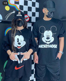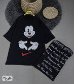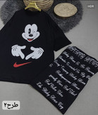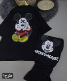 تیشرت لانگ ست زنانه و مردانه طرح میکی بسیار جذاب جنس اسپان فلامنت فول کش