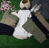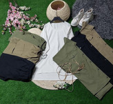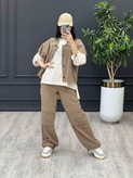کارگو سه تیکه شامل شومیز شلوار وست جنس کتان کشی و زیره تترون اعلا