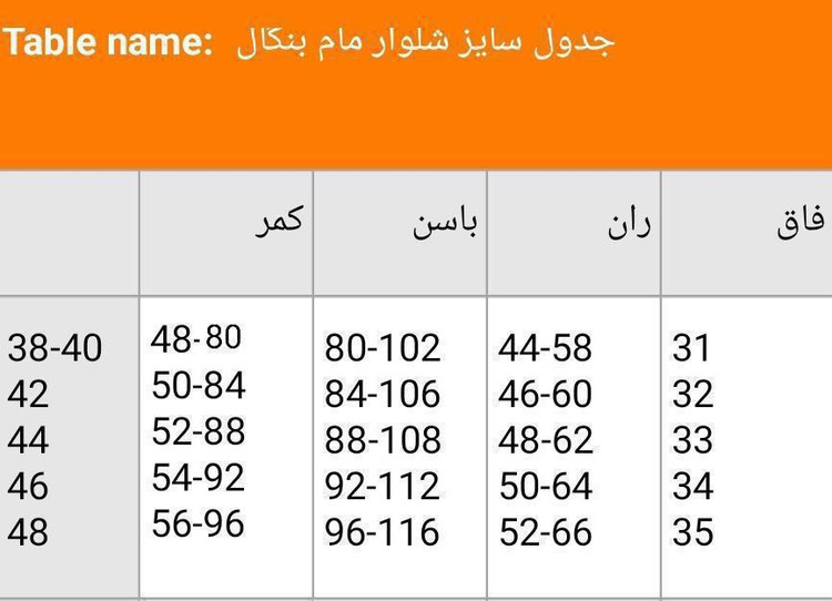 سایز ها : 40, 42, 44, 46, 48