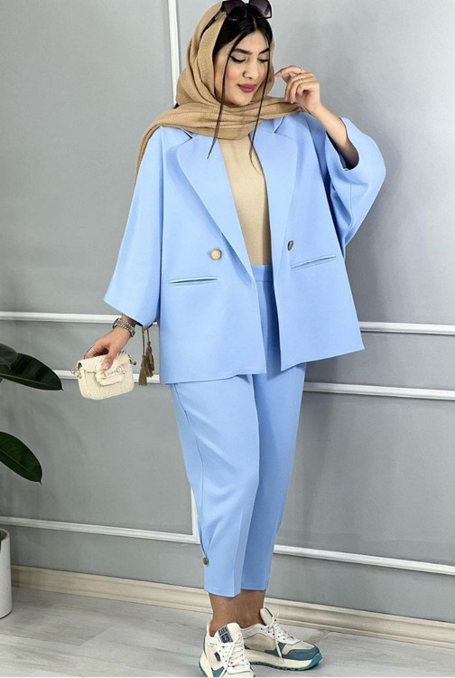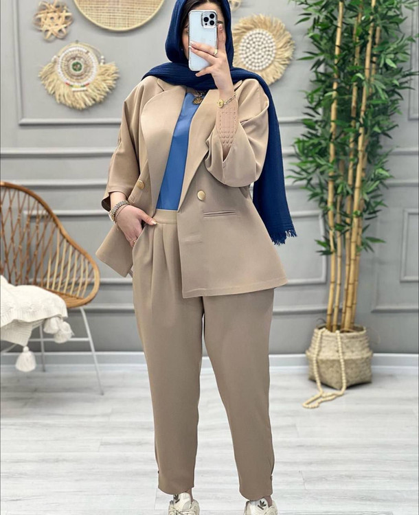 قد کت۸۰ بسیار آزاد قد شلوار حدودا۹۰ جیبهای کت کاربردی شلوار جیب دار ودوپیله در هرطرف دارد دکت لایه کوبی دارد و دوخت مزوندوز