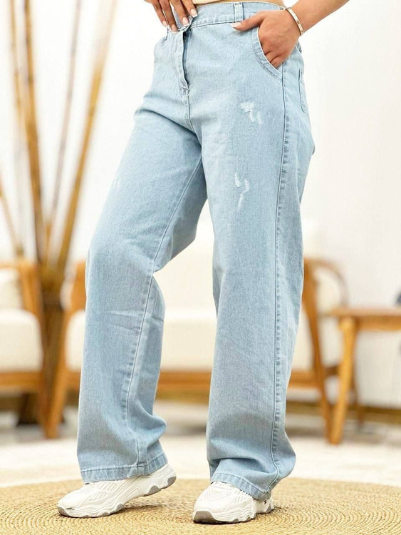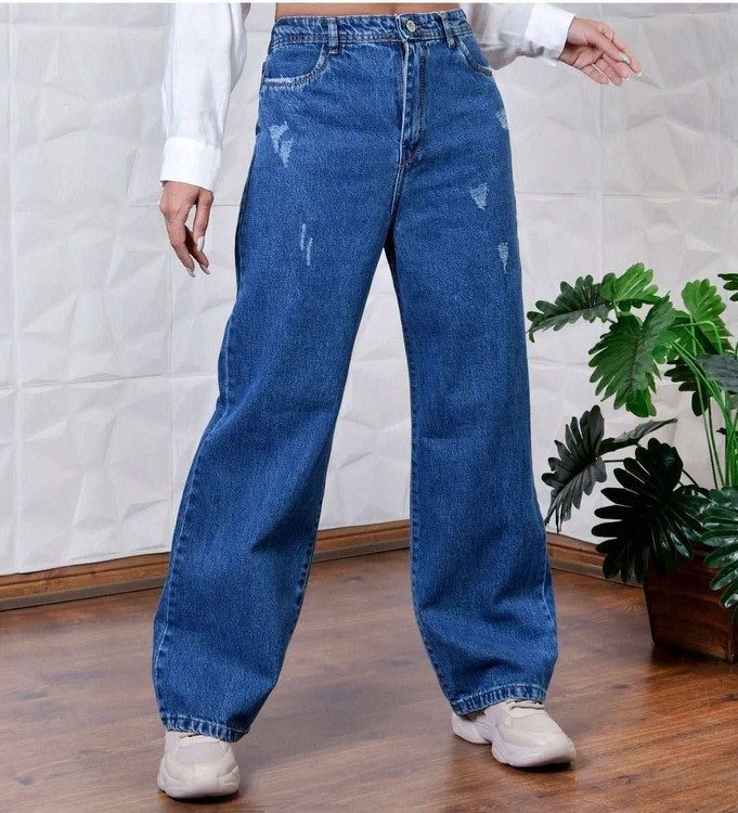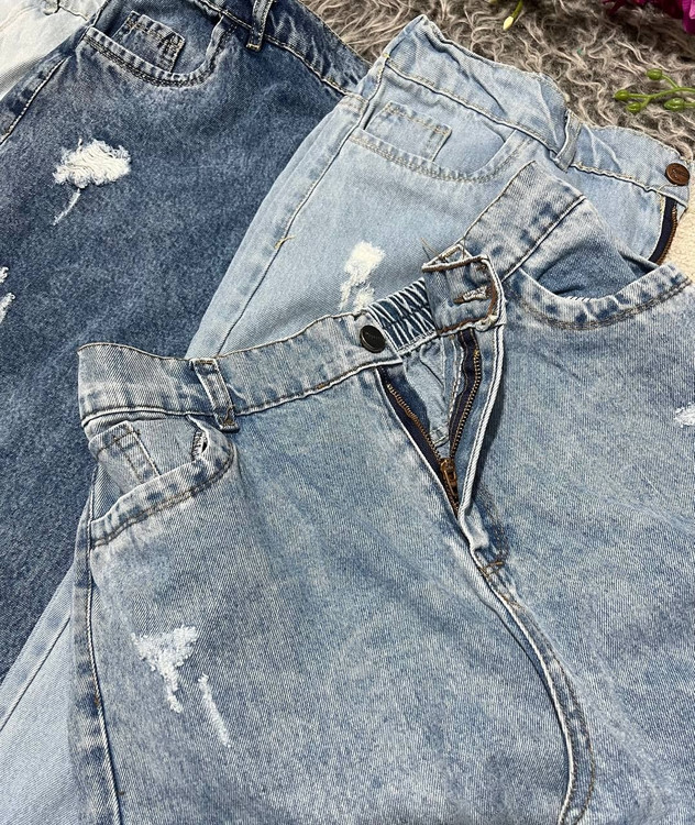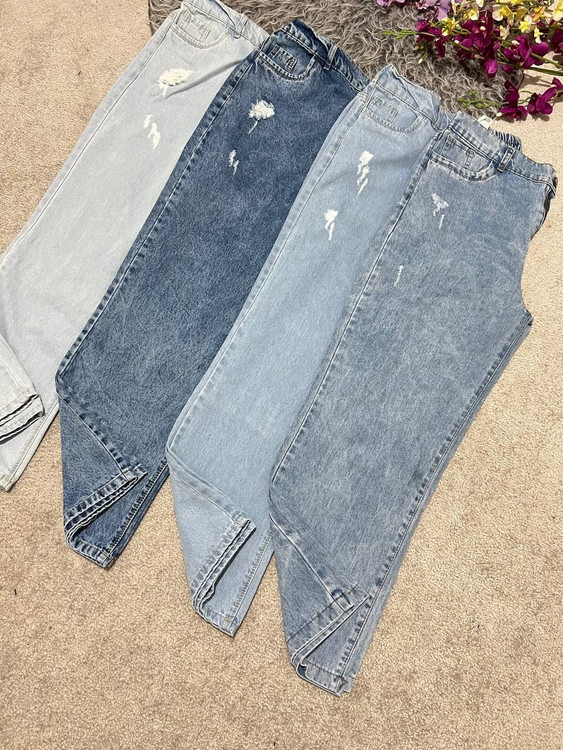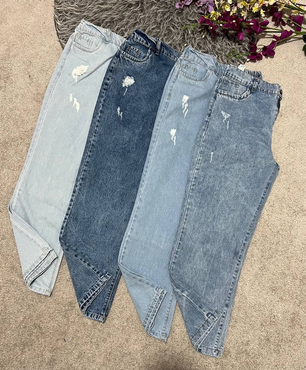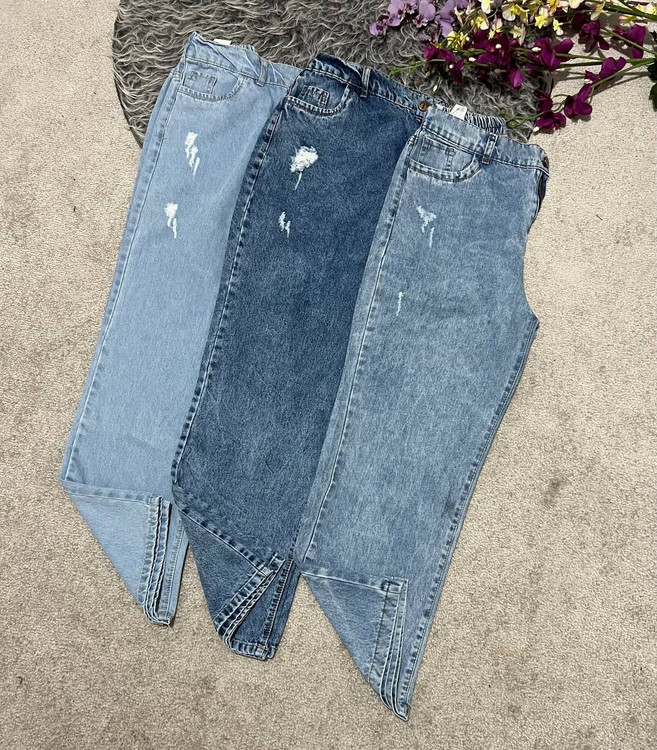 شلوار نیم بگ جین ضخیم اصل شسته و سنگشور شده