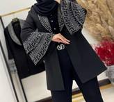 👚نام : مانتو کتی مجلسی آستین کلوش طرح ورساچ شارژ شد😍😍