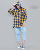 هودی پیراهنی چهار خونه پاییزه کلاهدار جنس پارچه داکرون پنبه درجه یک و اعلا با تنخور فوق العاده شیک و کیفیت تضمینی دو جیب کاربردی در جلوی کار آستین پیله دار قد از جلو 75 قد از پشت 85 دور سینه تا 118 قد استین 55 دور باسن 122