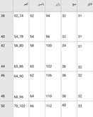 سایز ها : 38, 40, 42, 44, 46, 48, 50